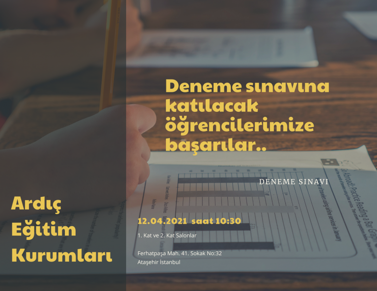 Kendi bünyemizde öğretmenlerimiz tarafından hazırlanan deneme sınavımız 12.04.2021 tarihinde gerçekleştirilecektir.